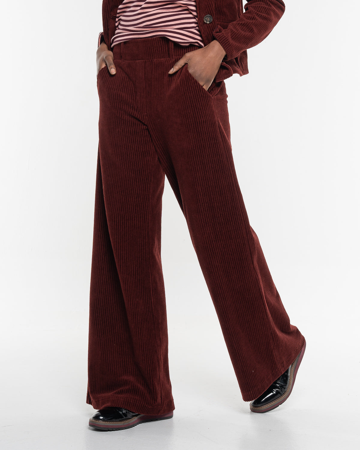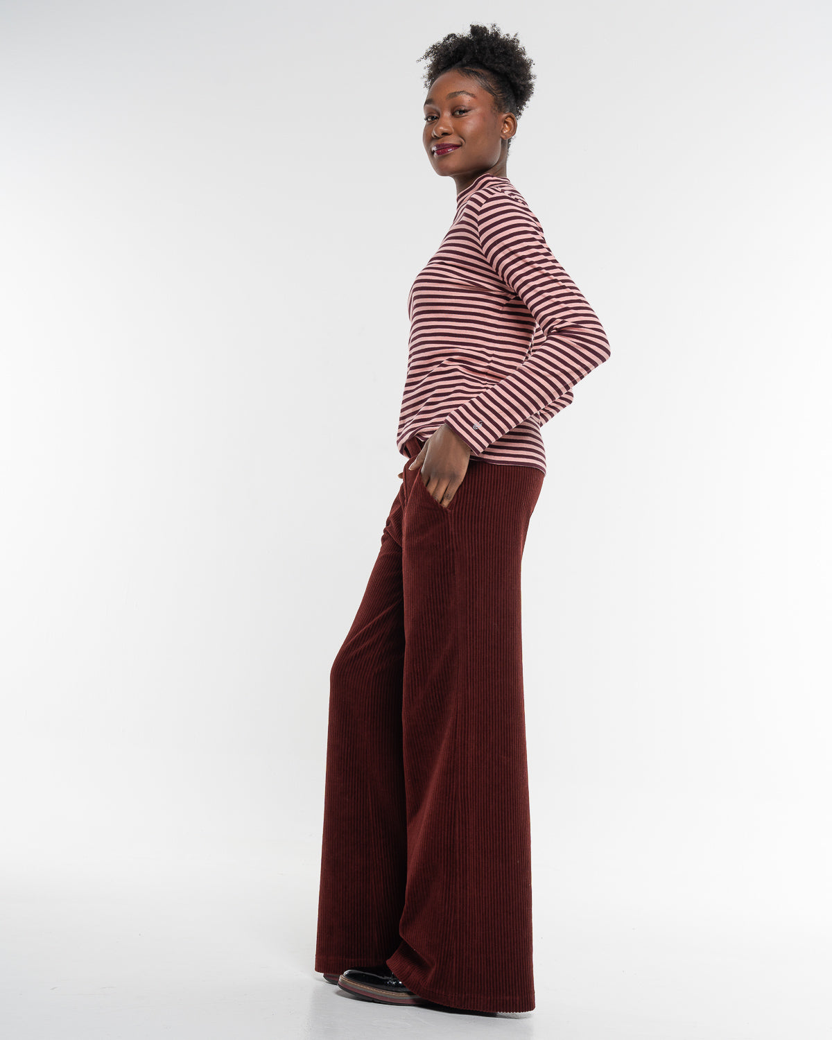 Die Cord Hose Marlene Ruby Red bringt Farbe in Deine Garderobe. Der kräftige Rubinton verleiht der klassischen Marlene-Passform einen modernen Twist und macht die Hose zum echten Hingucker. Mit dem ausgestellten Bein und dem Mid Waist-Bund sorgt sie für eine feminine Silhouette, die zugleich bequem und stilvoll ist.