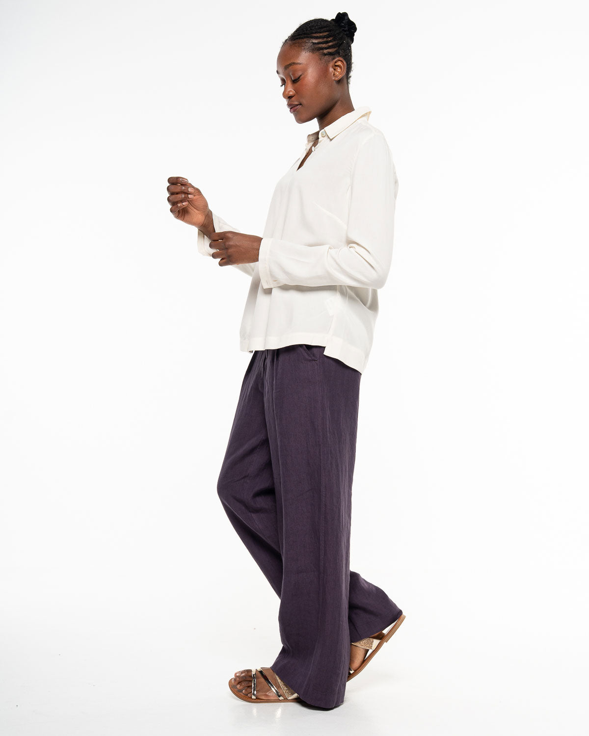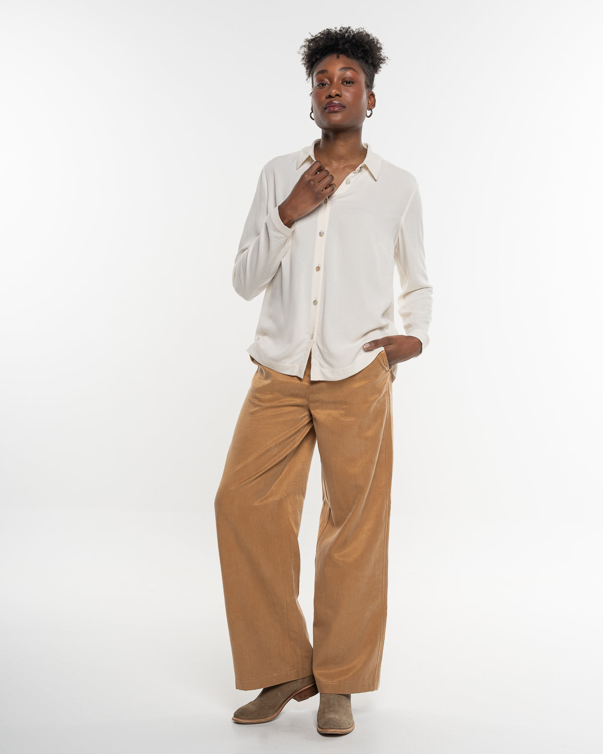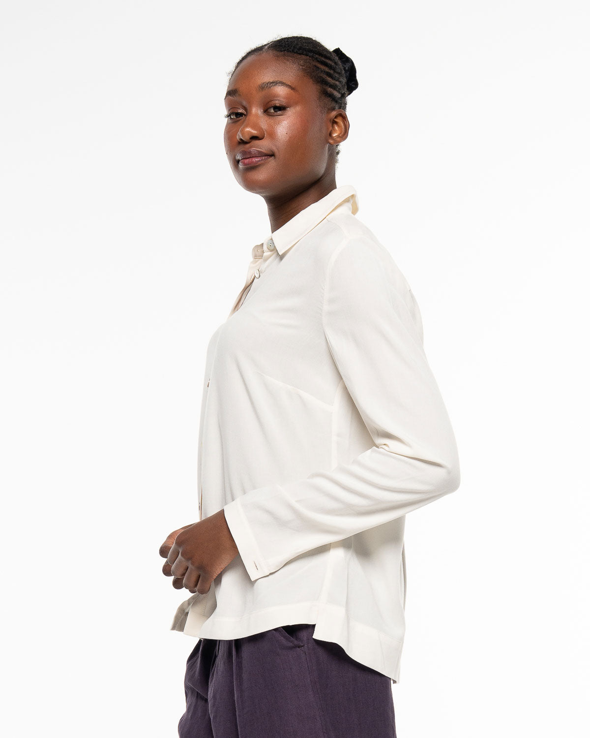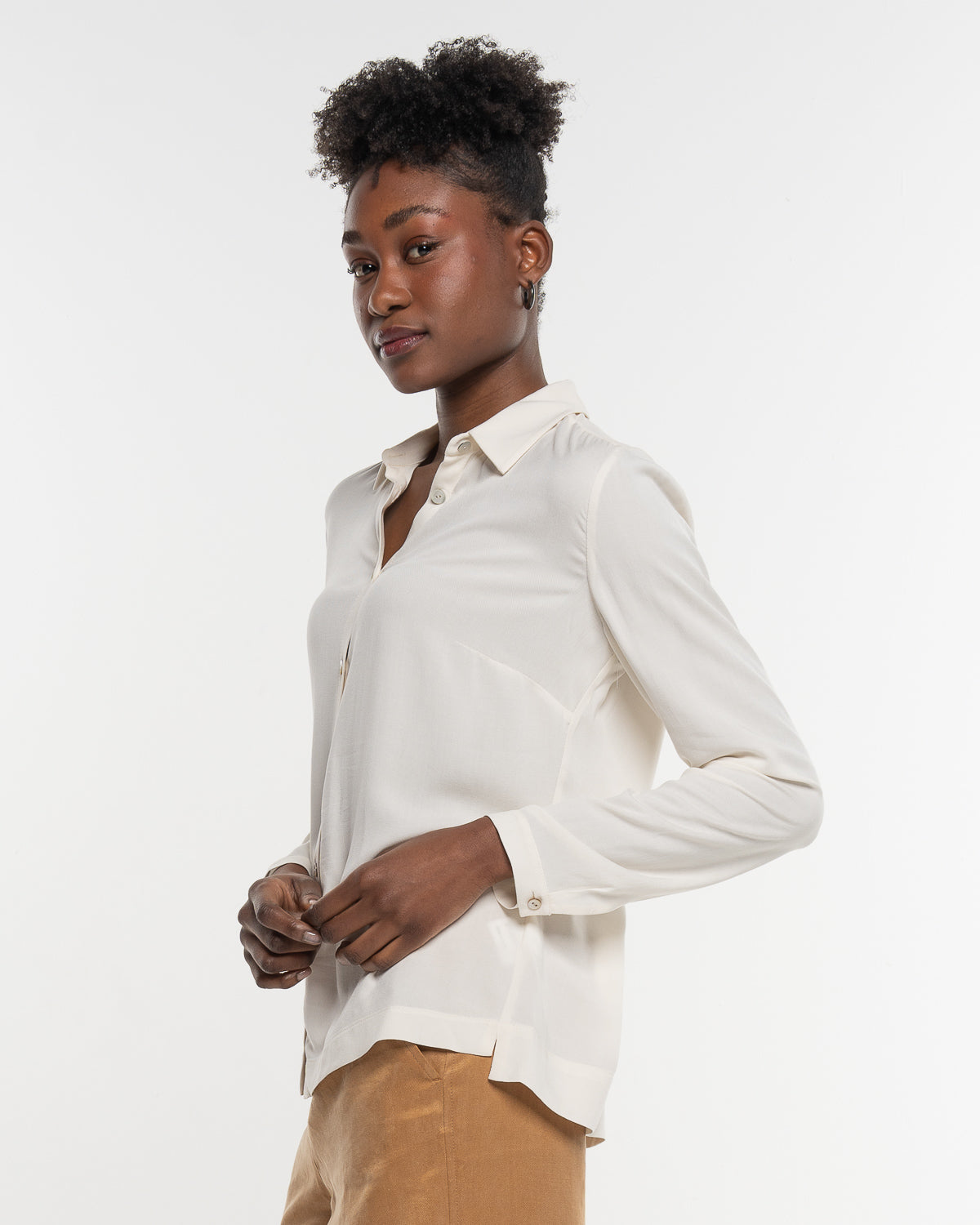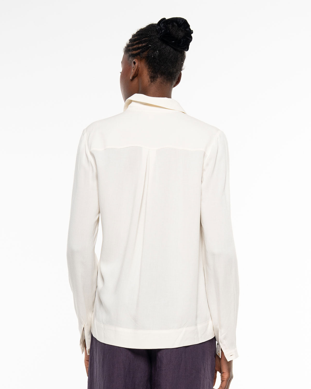 Die Bluse überzeugt mit durchdachten Elementen: Schulterpasse und Rückenfalte schenken Bewegungsfreiheit, seitliche Schlitze am Saum setzen dezente Akzente und unterstreichen den lockeren Fall. So wirkt die Bluse gleichzeitig klassisch und modern – ein Piece, das sich mühelos kombinieren lässt.