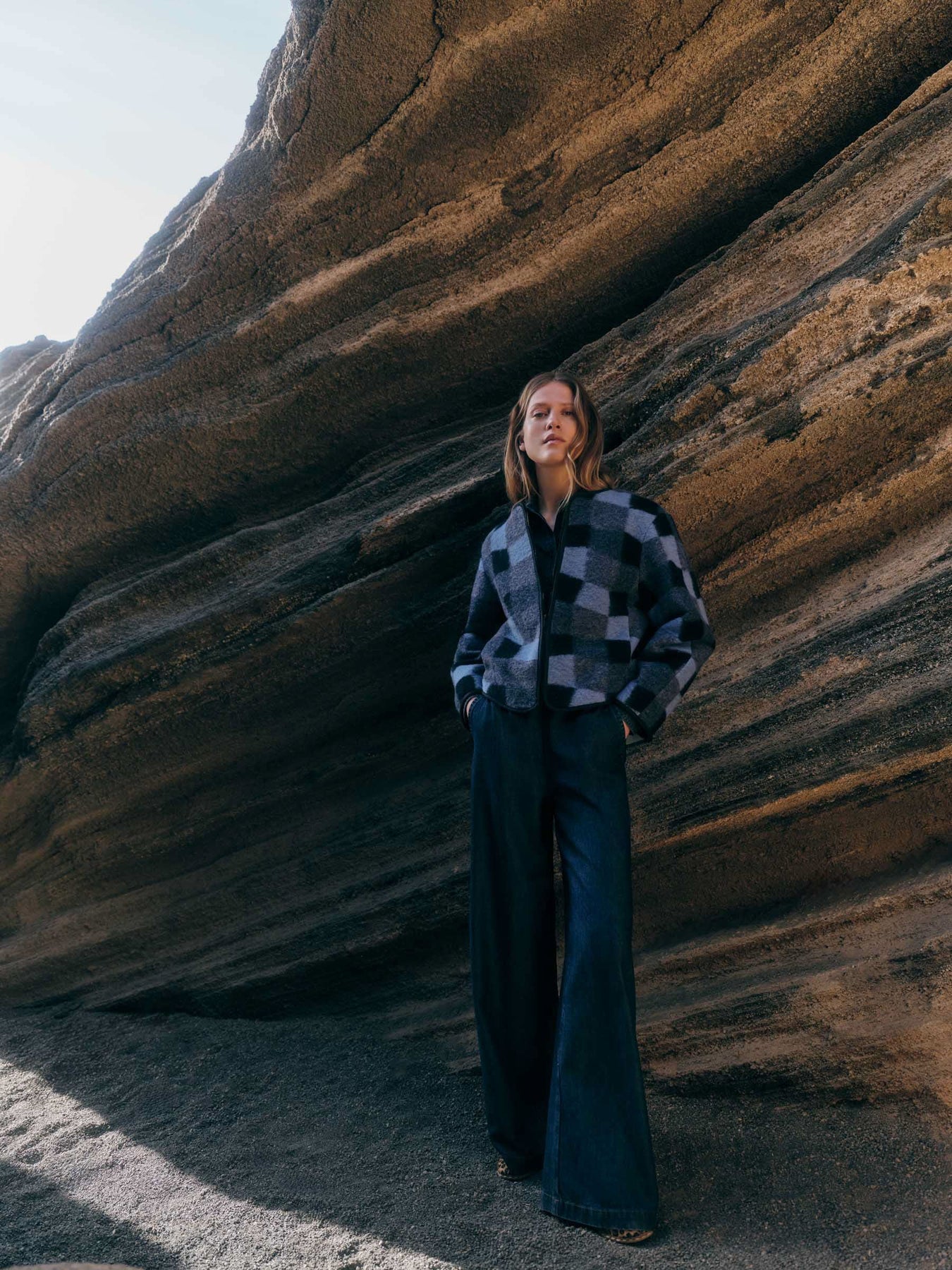 Ob als lässige Übergangsjacke, Indoor-Alternative zum Blazer oder als Eyecatcher im Layering – dieses vielseitige Modell passt zu Denim, Strick & eleganten Stoffhosen. Der Rundhalsausschnitt, der durchgehende Reissverschluss & die leicht verkürzte, gerade Form verleihen ihr einen modernen & femininen Look.