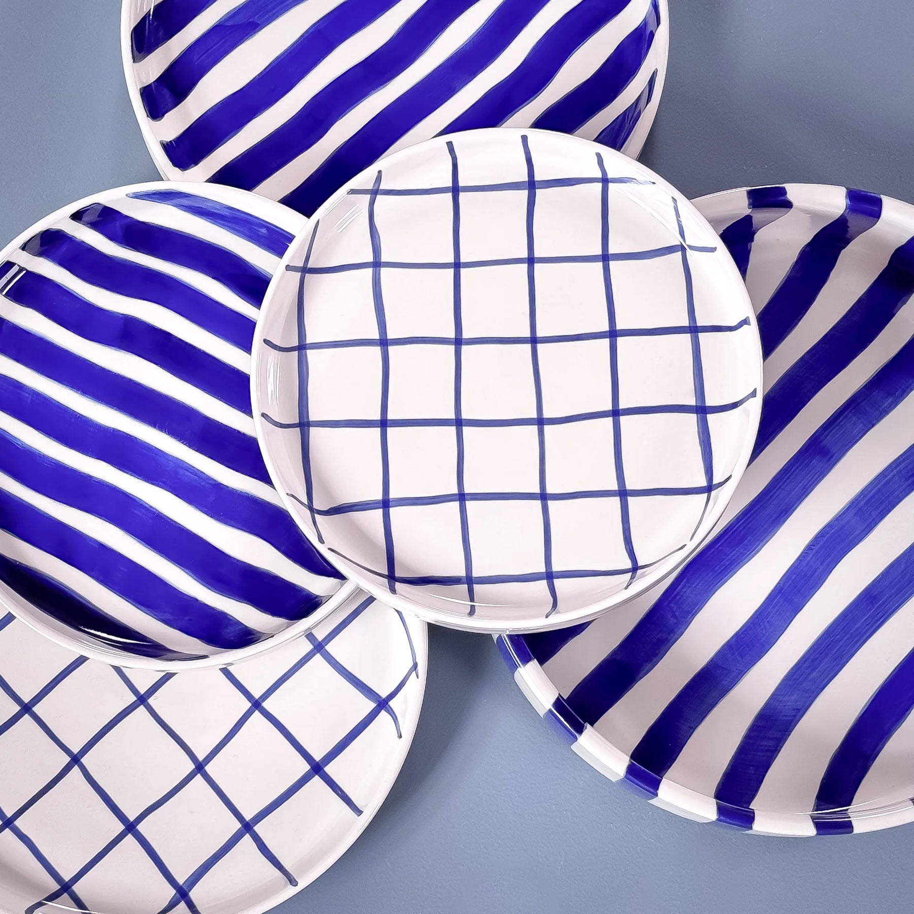 Der Teller Klein Grid Blue Mare bringt mediterranes Lebensgefühl auf Deinen Tisch. Die kompakte Form eignet sich ideal für Kuchen, Vorspeisen, kleine Snacks oder als praktischer Deckel auf passenden Schalen. Durch das harmonische Grid-Design in sanftem Blau wird jeder Moment ein kleines Highlight – vom Sonntagsfrühstück bis zum Dinner mit Freunden.