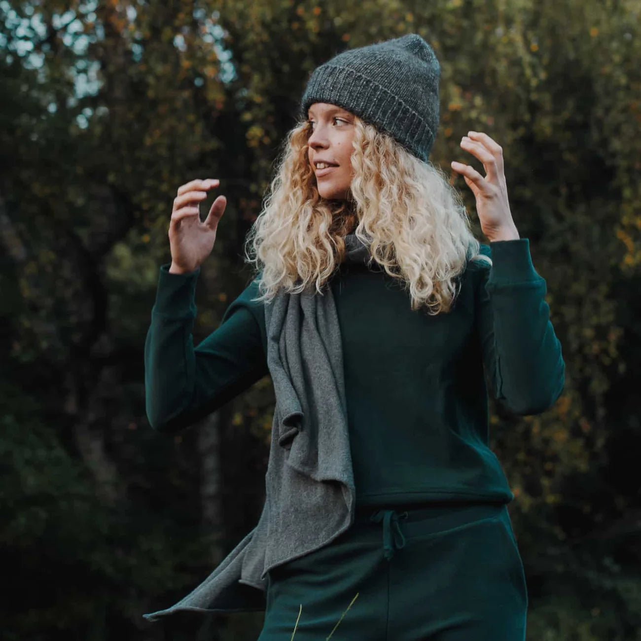 In Castelões, Portugal, wird Thea in sorgfältiger Handarbeit hergestellt. Dank GOTS-Zertifizierung und dem Einsatz recycelter Baumwolle steht der Schal für eine faire und ressourcenschonende Produktion. So trägst Du mit jedem Outfit zu einer umweltbewussten Kreislaufwirtschaft bei.
