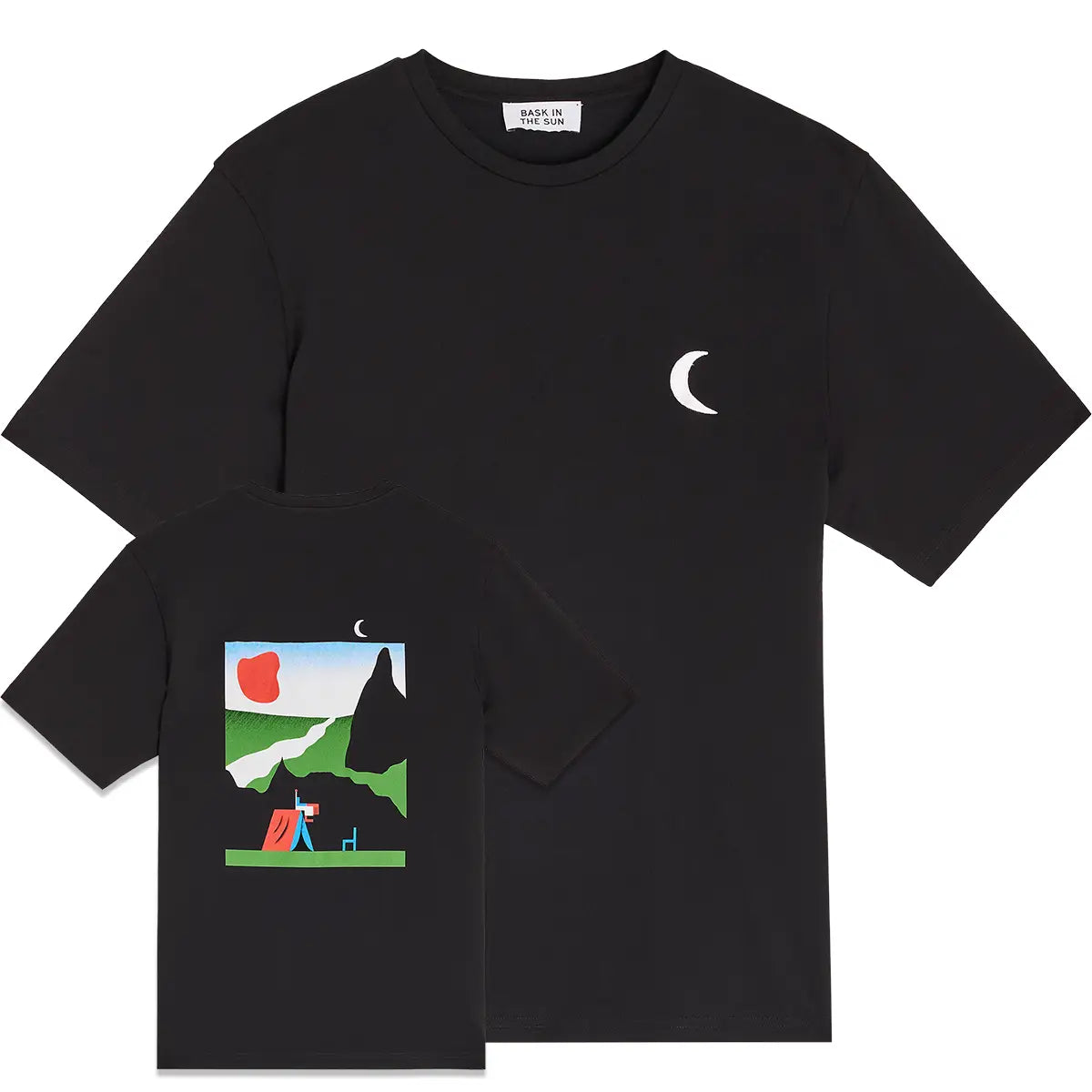 Das T-Shirt Moon Tee Black von Bask in the Sun überzeugt mit einem markanten Print, der nach einer Originalzeichnung des Berliner Künstlerduos Zebu gestaltet wurde. Der schwarze Hintergrund bringt das grafische Motiv besonders gut zur Geltung und macht das T-Shirt zu einem starken Statement-Piece für jeden Tag.