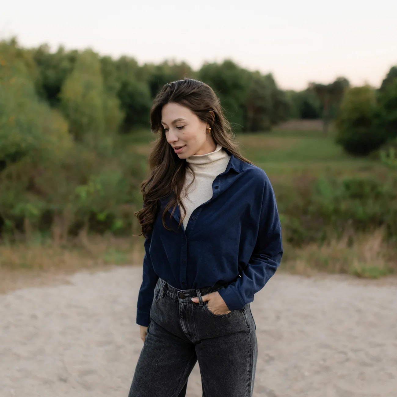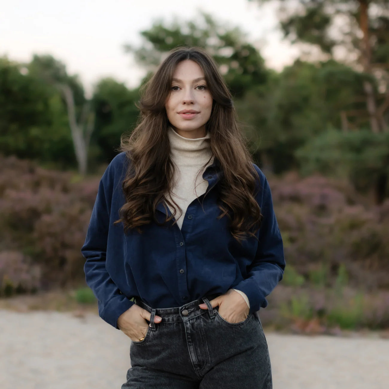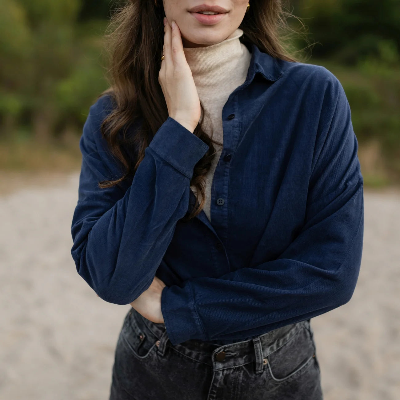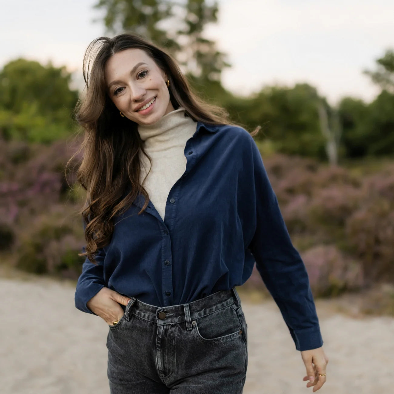 Ob als lockeres Oberteil zur Jeans, über einem Kleid getragen oder offen kombiniert mit einem T-Shirt – die Ruby Bluse ist ein vielseitiges Essential. Ihr zeitloser Dunkelblau-Ton macht sie zum stilvollen Begleiter, der sich mühelos in verschiedene Outfits integrieren lässt.