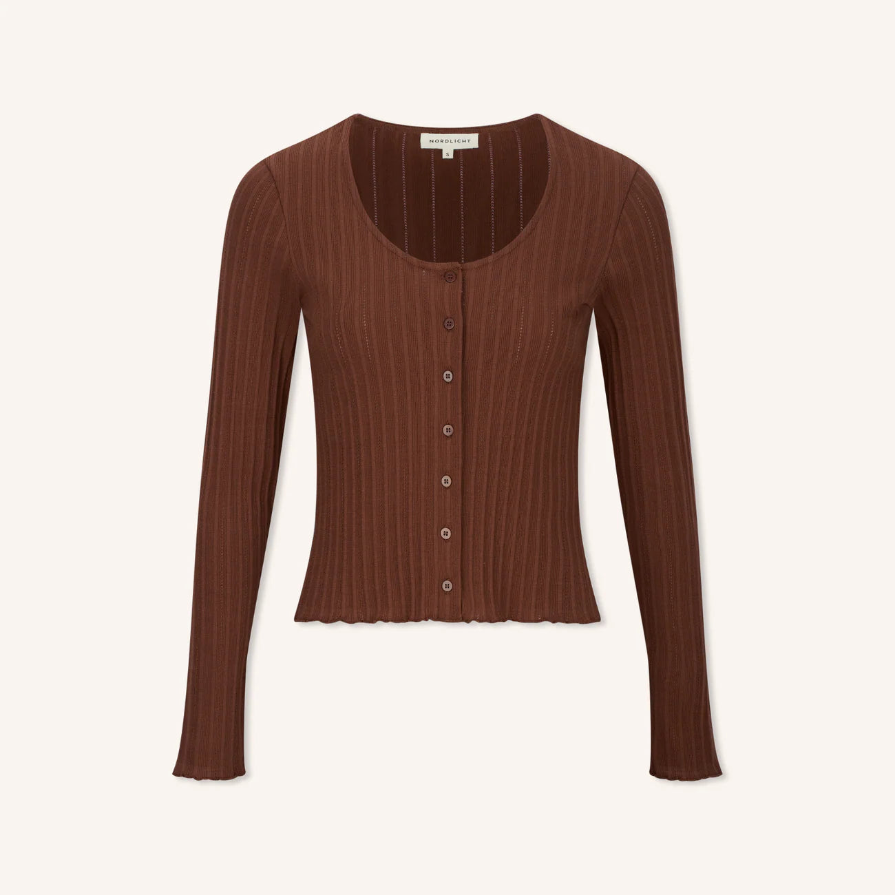 Der Jersey Cardigan Vida in Braun ist ein zeitloses Essential, das durch cleane Linien und subtile Details überzeugt. Der enganliegende Schnitt betont Deine Silhouette, während der Rundhalsausschnitt und das markante Saumdetail dem Cardigan einen modernen Charakter verleihen. Edle Knöpfe aus Corozo runden den Look ab.
