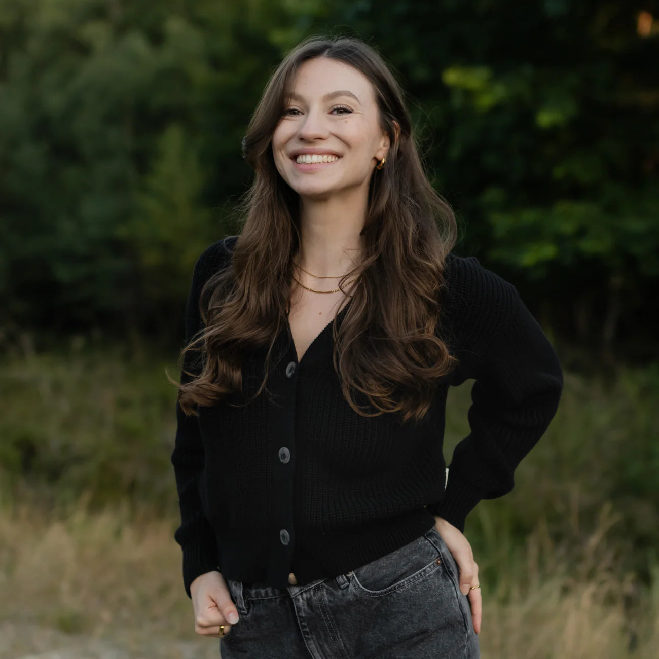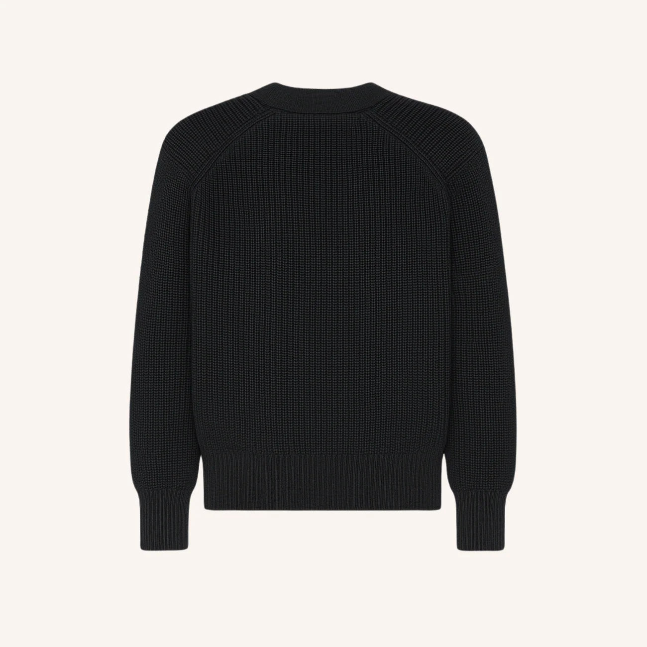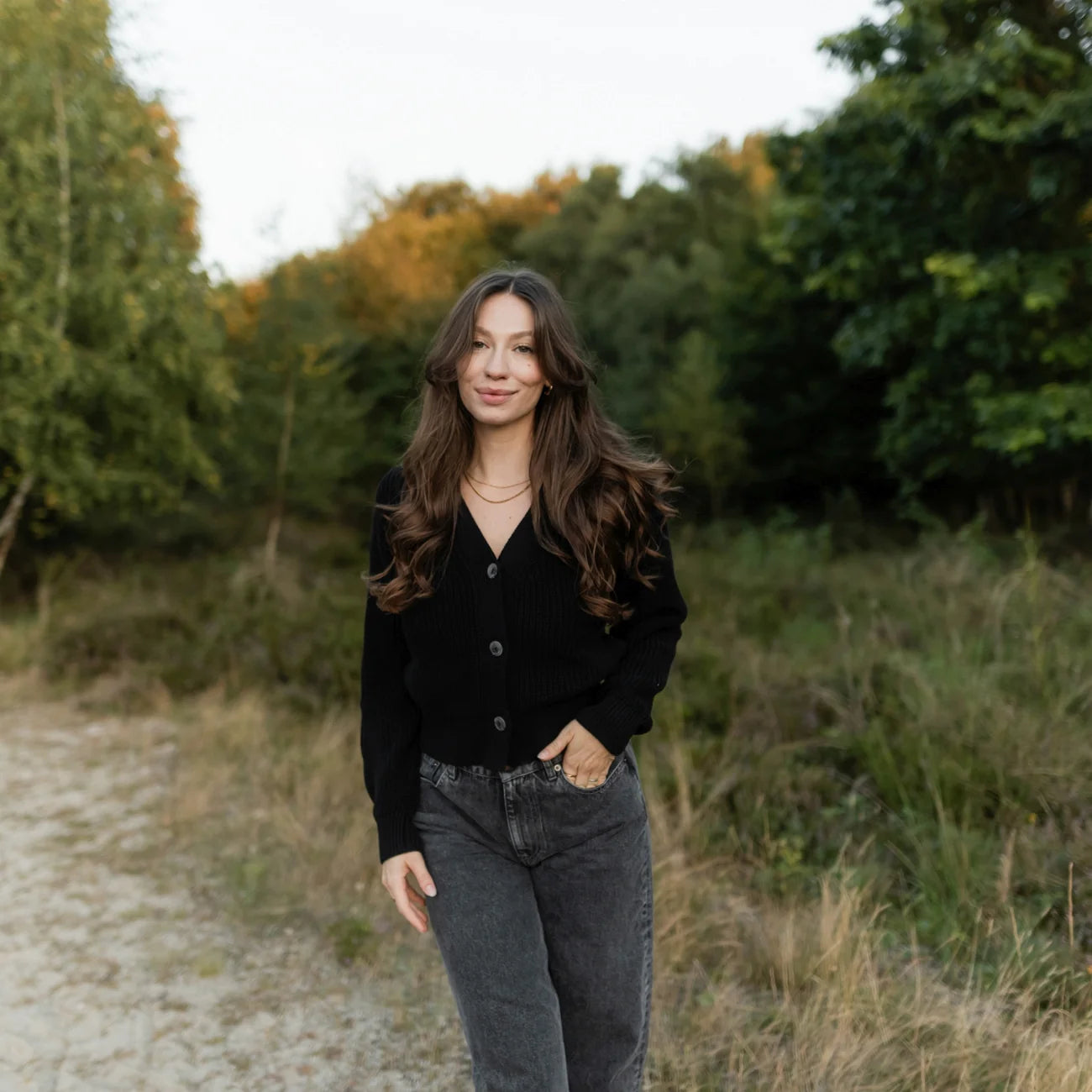 Die Strickjacke Marla in Schwarz verbindet nachhaltige Materialien mit zeitlosem Design. Der schwere Grobstrick macht sie langlebig, hochwertig und zu einem wärmenden Begleiter in der kühlen Jahreszeit. Ihr klassischer Look lässt sich vielseitig kombinieren – ob entspannt im Alltag oder als elegantes Layer-Piece.