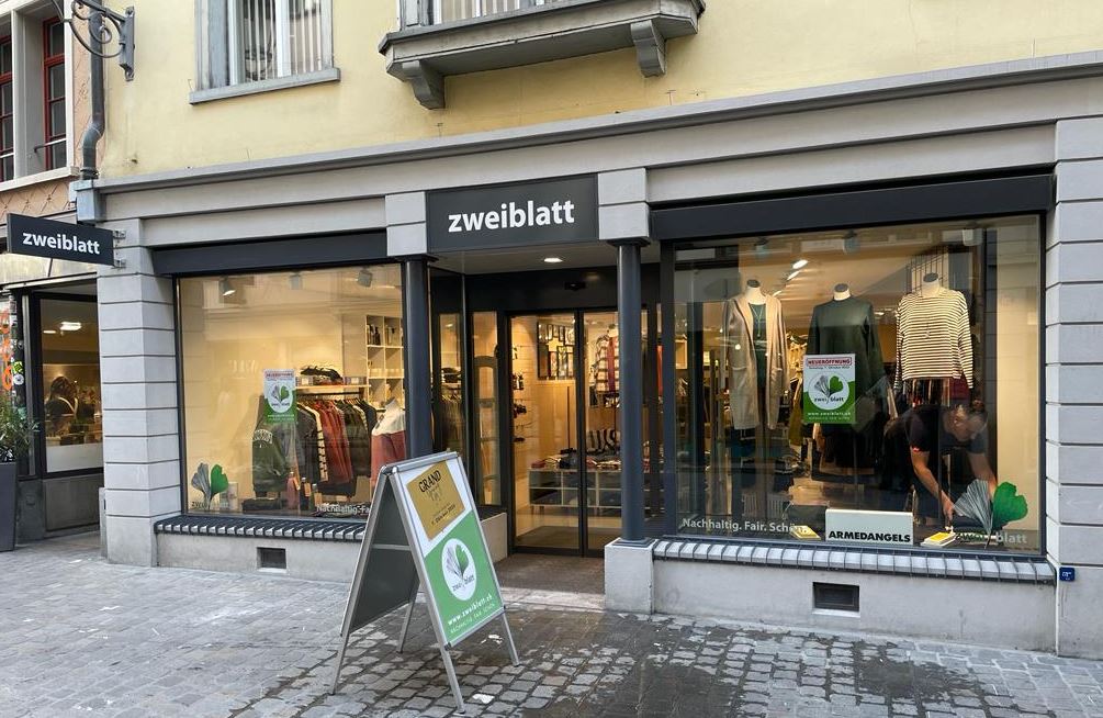 Besuche uns in einer unserer fünf Zweiblatt Concept Stores und entdecke vor Ort unsere nachhaltigen Produkte. Unsere Stores befinden sich in Rheinfelden, Schaffhausen, Bern, Winterthur und St. Gallen – jeder Standort bietet eine einzigartige Auswahl und persönliche Beratung. Weitere Informationen zu unseren Standorten findest Du unten. Wir freuen uns auf Deinen Besuch!
